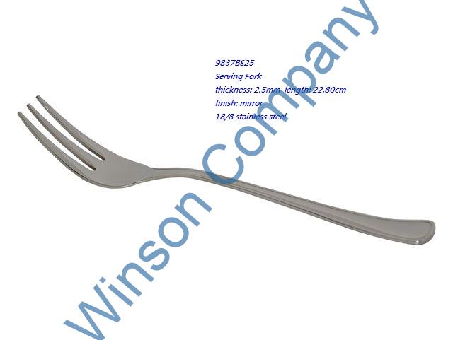 9837BS25-Serving Fork ← Previous Next → 9837BS25 Serving Fork thickness: 2.5mm length: 22.80cm finish: mirror 18/8 stainless steel