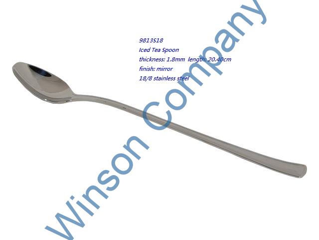 9813S18-Iced Tea Spoon ← Previous 9813S18 Iced Tea Spoon thickness: 1.8mm length: 20.40cm finish: mirror 18/8 stainless steel