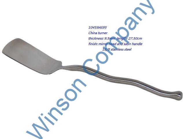 10459AS95-China turner ← Previous Next → 10459AS95 China turner thickness: 9.5mm length: 27.50cm finish: mirror head and satin handle 18/8 stainless steel