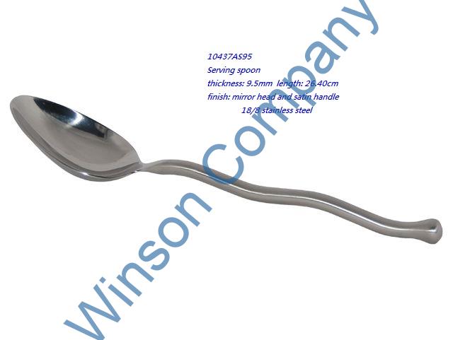 10437AS95-Serving spoon ← Previous 10437AS95 Serving spoon thickness: 9.5mm length: 26.40cm finish: mirror head and satin handle 18/8 stainless steel