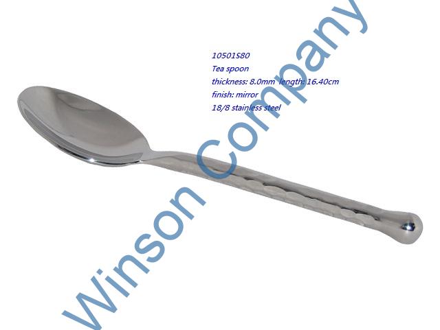 10501S80-Tea spoon ← Previous Next → 10501S80 Tea spoon thickness: 8.0mm length: 16.40cm finish: mirror 18/8 stainless steel