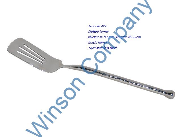 10559BS95-Slotted turner ← Previous Next → 10559BS95 Slotted turner thickness: 9.5mm length: 26.35cm finish: mirror 18/8 stainless steel