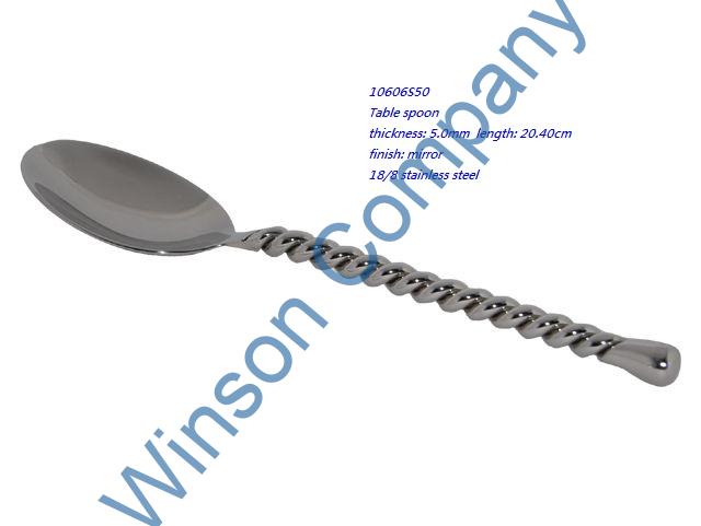 10606S50-Table spoon ← Previous Next → 10606S50 Table spoon thickness: 5.0mm length: 20.40cm finish: mirror 18/8 stainless steel