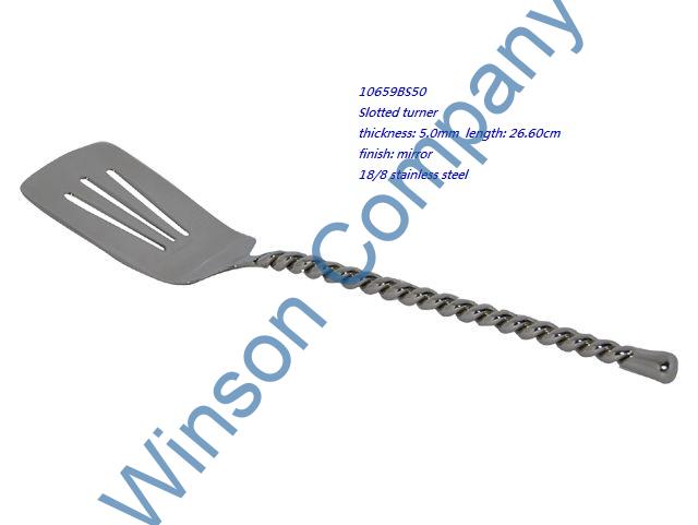 10659BS50-Slotted turner ← Previous Next → 10659BS50 Slotted turner thickness: 5.0mm length: 26.60cm finish: mirror 18/8 stainless steel