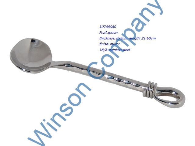 10709S80-Fruit spoon ← Previous Next → 10709S80 Fruit spoon thickness: 8.0mm length: 21.60cm finish: mirror 18/8 stainless steel