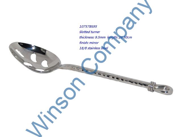 10757BS95-Slotted turner ← Previous Next → 10757BS95 Slotted turner thickness: 9.5mm length: 26.50cm finish: mirror 18/8 stainless steel