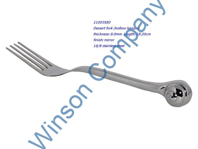 11003S80 Dessert fork (hollow handle) thickness: 8.0mm length: 18.20cm finish: mirror 18/8 stainless steel