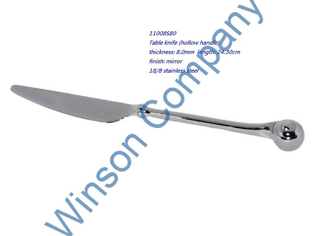 11008S80 Table knife (hollow handle) thickness: 8.0mm length: 24.30cm finish: mirror 18/8 stainless steel