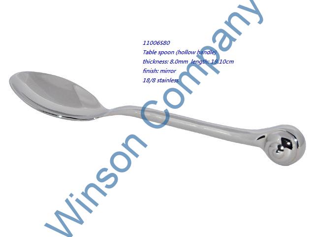 11006S80-Table spoon ← Previous Next → 11006S80 Table spoon (hollow handle) thickness: 8.0mm length: 19.10cm finish: mirror 18/8 stainless steel
