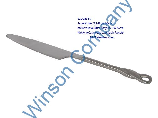11208S80-Table knife ← Previous 11208S80 Table knife (13/0 s/s blade) thickness: 8.0mm length: 24.40cm finish: mirror head and satin handle 18/8 stainless steel