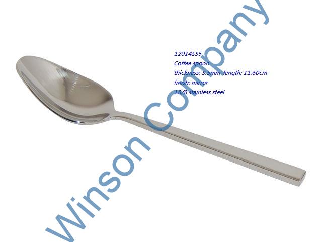 12014S35-Coffee spoon ← Previous Next → 12014S35 Coffee spoon thickness: 3.5mm length: 11.60cm finish: mirror 18/8 stainless steel