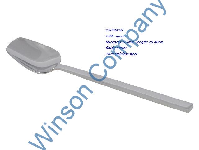 12006S55-Table spoon ← Previous Next → 12006S55 Table spoon thickness: 5.5mm length: 20.40cm finish: mirror 18/8 stainless steel