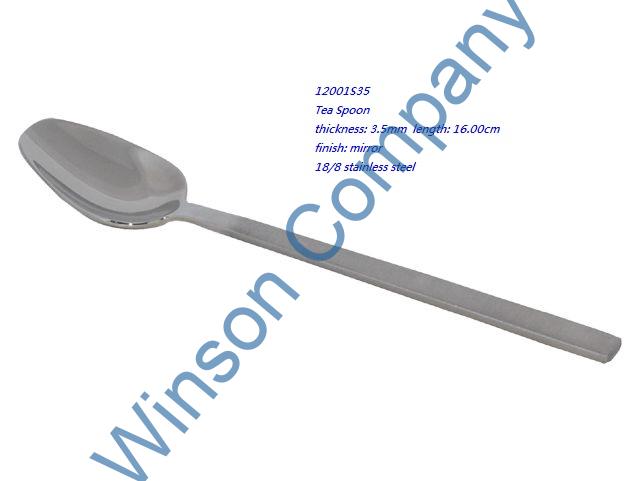 12001S35-Tea Spoon ← Previous Next → 12001S35 Tea Spoon thickness: 3.5mm length: 16.00cm finish: mirror 18/8 stainless steel