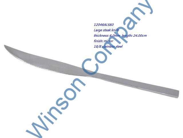 12046ALS60-Large steak knife ← Previous Next → 12046ALS60 Large steak knife thickness: 6.0mm length: 24.00cm finish: mirror 18/8 stainless steel