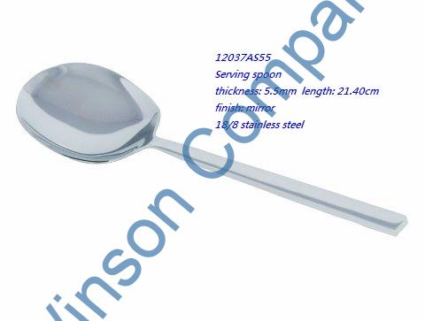 12037AS55-Serving spoon ← Previous Next → 12037AS55 Serving spoon thickness: 5.5mm length: 21.40cm finish: mirror 18/8 stainless steel