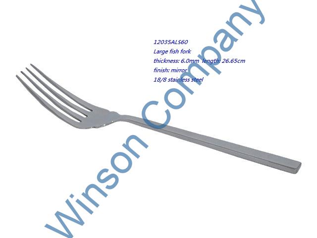 12035ALS60-Large fish fork ← Previous Next → 12035ALS60 Large fish fork thickness: 6.0mm length: 26.65cm finish: mirror 18/8 stainless steel