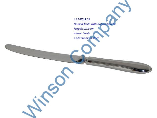 12707AR10-Dessert knife ← Previous Next → 12707AR10 Dessert knife with hollow handle length: 22.3cm mirror finish 13/0 stainless steel