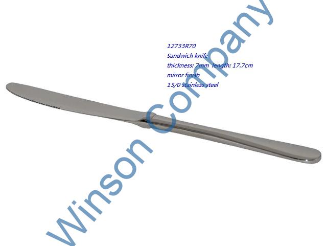 12733R70-Sandwich knife ← Previous Next → 12733R70 Sandwich knife thickness: 7mm length: 17.7cm mirror finish 13/0 stainless steel