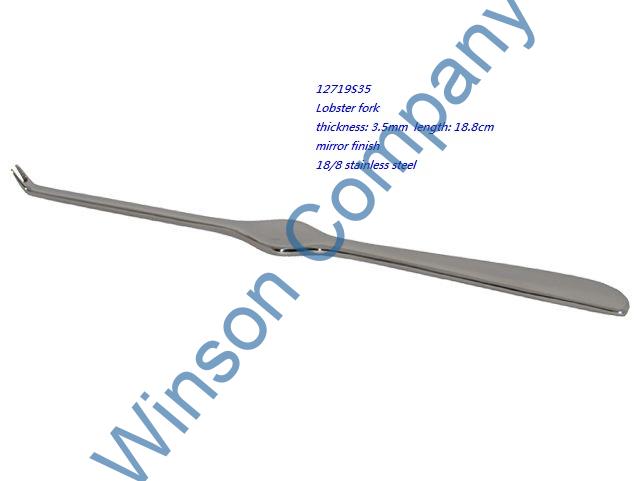 12719S35-Lobster fork ← Previous Next → 12719S35 Lobster fork thickness: 3.5mm length: 18.8cm mirror finish 18/8 stainless steel