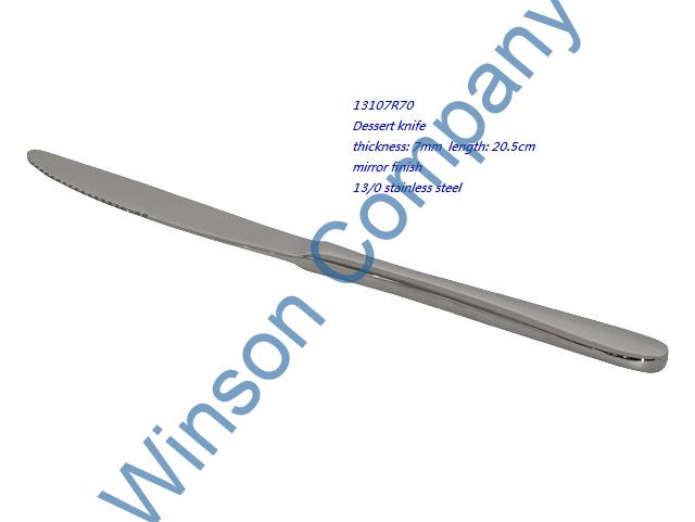 13107R70-Dessert knife ← Previous Next → 13107R70 Dessert knife thickness: 7mm length: 20.5cm mirror finish 13/0 stainless steel
