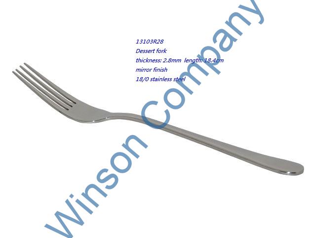 13103R28-Dessert fork ← Previous Next → 13103R28 Dessert fork thickness: 2.8mm length: 18.4cm mirror finish 18/0 stainless steel