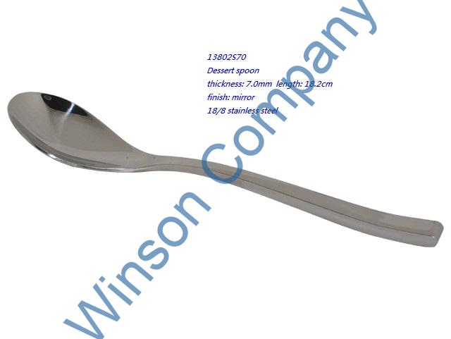 13802S70-Dessert spoon ← Previous Next → 13802S70 Dessert spoon thickness: 7.0mm length: 18.2cm finish: mirror 18/8 stainless steel