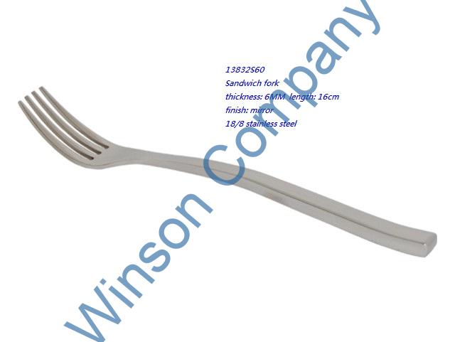 13832S60-Sandwich fork ← Previous Next → 13832S60 Sandwich fork thickness: 6MM length: 16cm finish: mirror 18/8 stainless steel