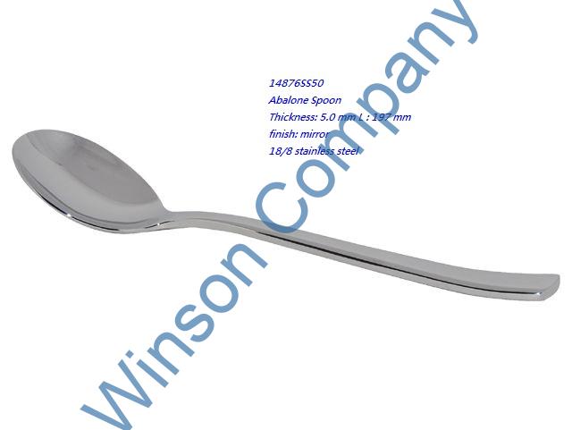 14876SS50-Abalone Spoon ← Previous 14876SS50 Abalone Spoon Thickness: 5.0 mm L : 197 mm finish: mirror 18/8 stainless steel