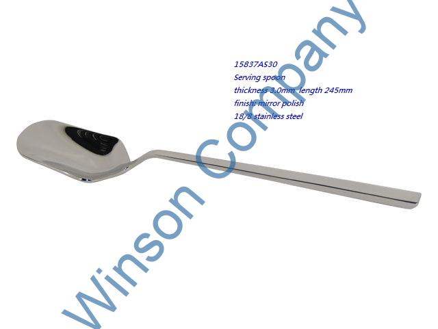 15837AS30-Serving spoon ← Previous Next → 15837AS30 Serving spoon thickness 3.0mm length 245mm finish: mirror polish 18/8 stainless steel