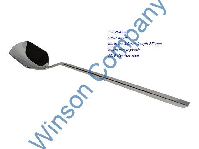 15826AS30-2-Salad spoon ← Previous Next → 15826AS30-2 Salad spoon thickness 3.0mm length 272mm finish: mirror polish 18/8 stainless steel