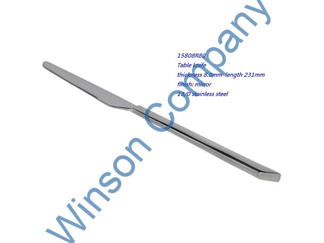 15808R80-Table knife ← Previous 15808R80 Table knife thickness8.0mm length 231mm finish: mirror 13/0 stainless steel