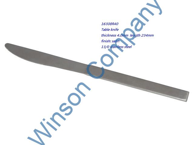 16308R40-Table knife ← Previous 16308R40 Table knife thickness 4.0mm length 234mm finish: satin 13/0 stainless steel