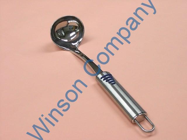 KN5966 ← Previous Next → KN5966 Sauce ladle w/ santophene stripes on oval handle front & end cap + hook 18/10 stainless steel