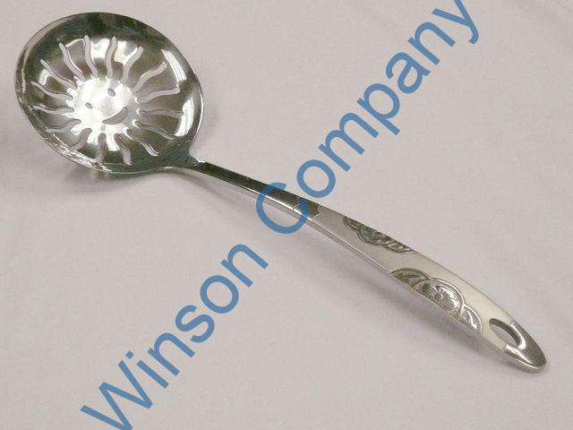 KN6184 ← Previous Next → KN6184 10cm(D) Rice skimmer with flower pattern on handle 32.8cm(L) thickness: 4.0mm 18/0 stainless steel