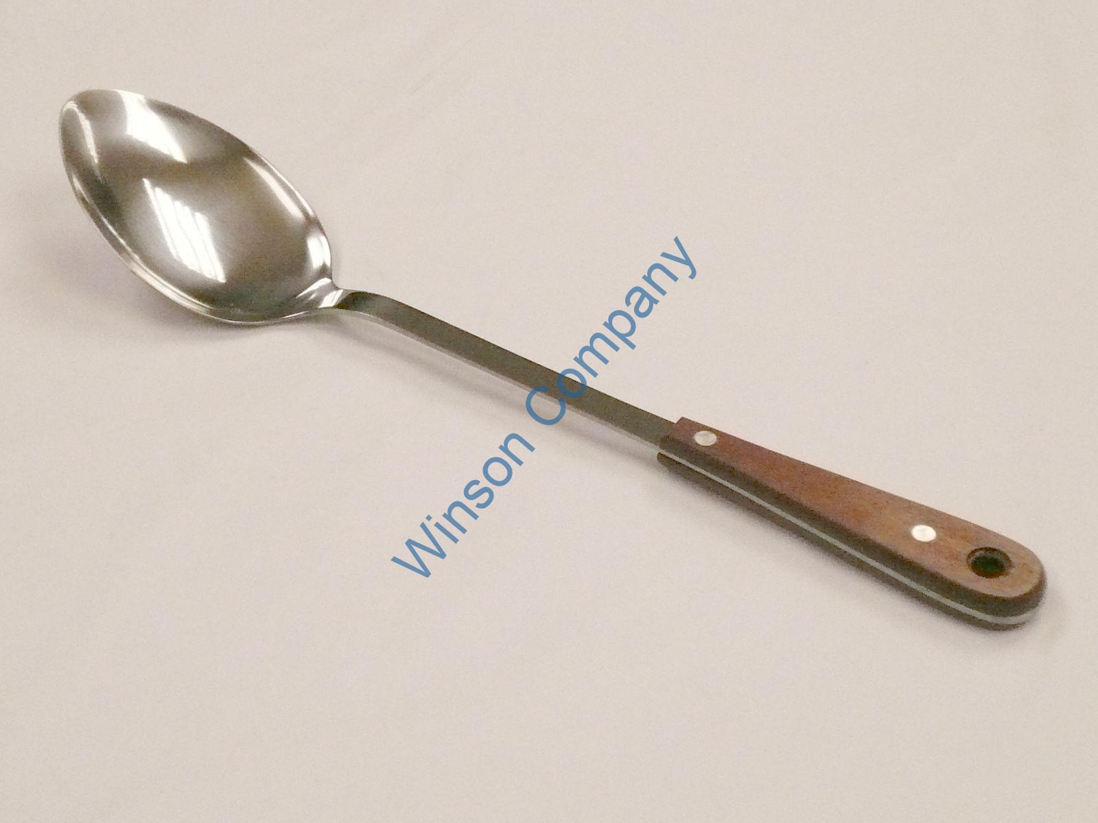 KN6335 ← Previous Next → KN6335 Cooking spoon with wooden handle 33.5cm(L.) thickness: 2.5mm 18/0 stainless steel
