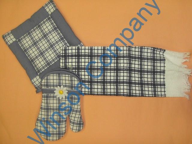 KN6392 15 X 25 Terry towel (printed) 10.5 oven mitten w/ 3D flower 9 pot holder set