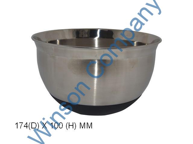 KN6577 174(D)x100mm(H) 18/8 stainless steel 0.6mm mixing bowl with round rim and non-slip black silicon base 18/8 stainless steel