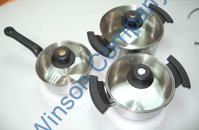 CK5106 ← Previous CK5106 18/10 S/S Cookware set inc 1 x each of 16×7.5cm covered saucepan 18×8.5cm covered saucepot 20×9.5cm covered saucepot 18/10 stainless steel