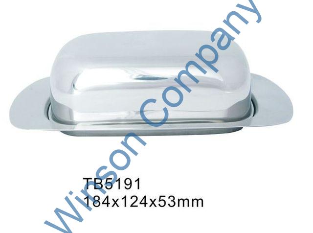 Butter Dish TB5191 TB5191: size 184 x 124 x 53mm TB5191 Butter dish with cover size: 184mm(L) x 124mm(W) x 53mm(H) 18/8 stainless steel