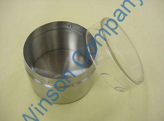 SN0072-D63H50(M) Can with clear acylic lid flat bottom with magnet 1.2mm thick with wrap around sleeve label. 12/120 18/8 stainless steel