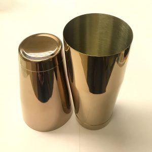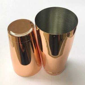 - BA5229CP 2pcs shaker cup set, small cup 600ml, Ø88mm x Ø60mm x H145mm, large cup 800ml, Ø90mm x Ø60mm x H180mm, electroplating Copper color outside, satin polish inside 18/8 stainless steel