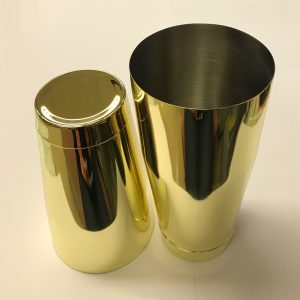 - BA5229GD 2pcs shaker cup set, small cup 600ml, Ø88mm x Ø60mm x H145mm, large cup 800ml, Ø90mm x Ø60mm x H180mm, electroplating Gold color outside, satin polish inside 18/8 stainless steel