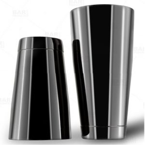 - BA5229GUN 2pcs shaker cup set, small cup 600ml, Ø88mm x Ø60mm x H145mm, large cup 800ml, Ø90mm x Ø60mm x H180mm, electroplating Gun black metal color outside, satin polish inside 18/8 stainless steel