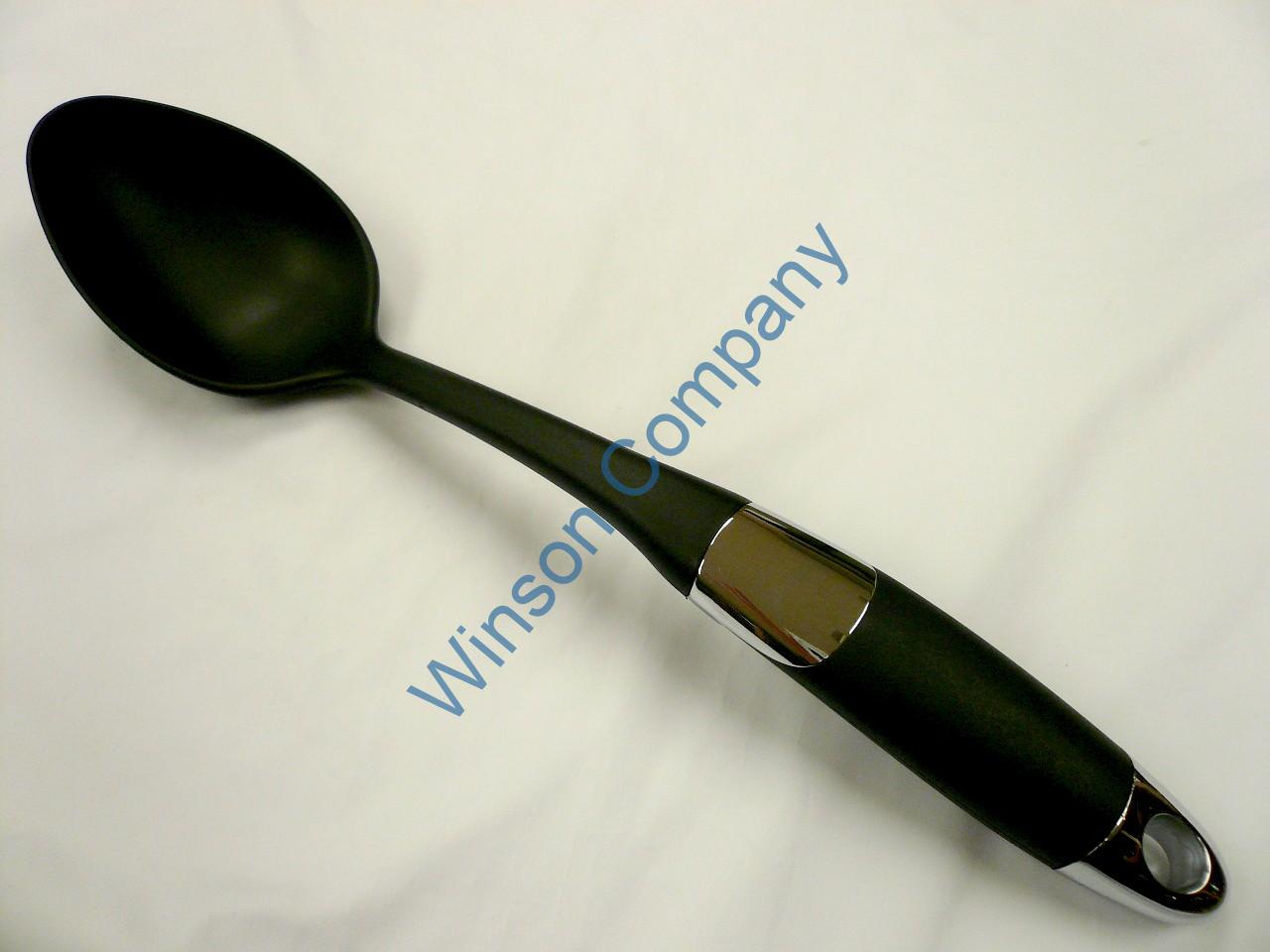 KN5863 Nylon cooking spoon w/zinc alloy(chrome plated) + TPE handle