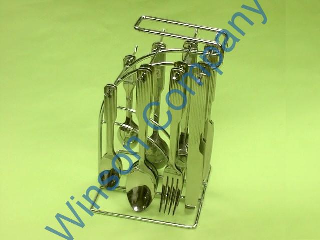 Cutlery set TB5827 TB5827 Cutlery set + chrome-plated rack 6 x tea spoon 6 x dessert spoon 6 x dessert fork 6 x dessert knife. TB5827 Cutlery set + chrome-plated rack 6 x tea spoon 6 x dessert spoon 6 x dessert fork 6 x dessert knife. 18/0 stainless steel