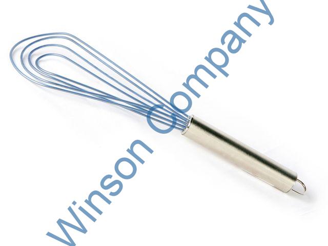 BK5395 25cm Silicone flat whisk (4 wires) with 3/4 tube handle and 2mm guage U shape wire hook 18/8 stainless steel