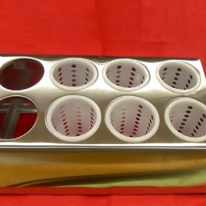 - SN5281 Flatware cylinder holder 38x29x20cm with 6 plastic cylinders dia. 9.5cm 18/8 stainless steel