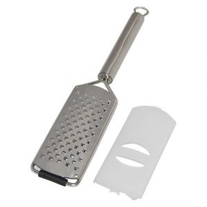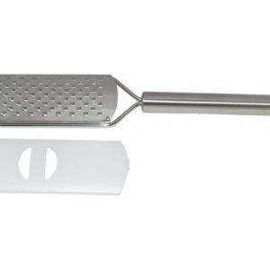KN6429 S/S flat grater with plastic cover 18/8 S/S round tube handle(20mmDx126mmL ) & hook total length 298mm