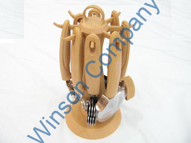 KN5579 8pc Kitchen gadgets set each set with can opener mash strainer pizza cutter bottle opener ice-cream scoop knife sharpener peeler and revolving stand.