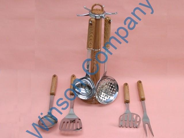 - KN6284 6 pc set of Kitchen tools w/ 6 hooks ABS revolving stand w/ handle #76WA. contains: 2140/76WA 2161/76WA 2163/76WA 2164/76WA 2165/76WA 2167/76WA each 18/0 stainless steel